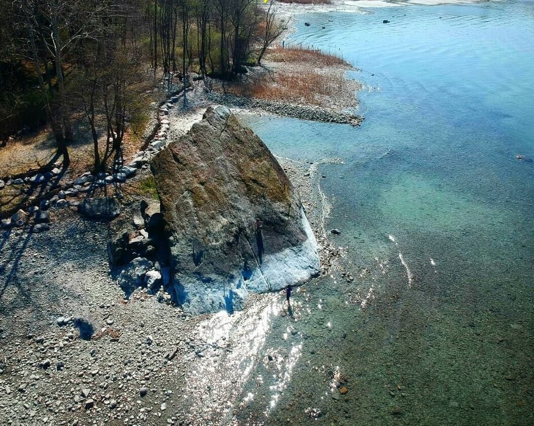 The "Sass Cavalàsc" is a colossal erratic boulder located on the shore of Lake Verbano, in the municipality of Ranco, near the border with Ispra. It, like many other erratic boulders scattered throughout our area, testifies to a significant geological phenomenon that began about 60,000 years ago and ended 15,000 to 20,000 years ago. Since then, no geological event of such importance and grandeur has occurred on the Earth's surface. The Alpine chain, which was much higher than it is today, was covered by a massive blanket of snow and ice that, due to gravitational force on the inclined plane it rested on and aided by the heat of the Earth, began to descend and spread, transporting a vast amount of stones. This era was called the "glacial" period and was marked by a succession of glacial phases and interglacial phases with a milder climate, and perhaps at times even warmer than today.