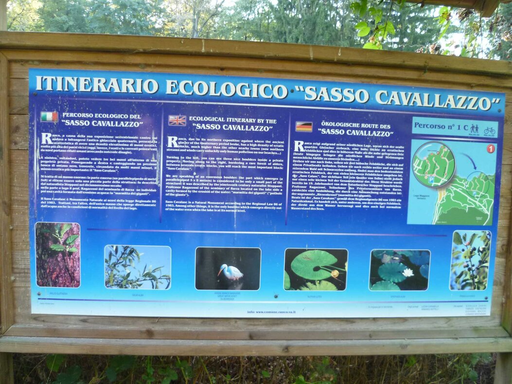 Regarding erratic boulders, popular imagination, sensing that they were blocks that came from afar, speculated that their transport was aided by fabulous giants or even the devil himself. In our area, these colossi abound in the region between Ranco, Angera, Sesto Calende, Lentate, Barza, and Ispra. At the head of these boulders stands the famous "Sass Cavalàsc," well-known even to foreign geologists, first described by Antonio Stoppani, a writer and naturalist from the last century. It is protected by regional law no. 86 of 1983.